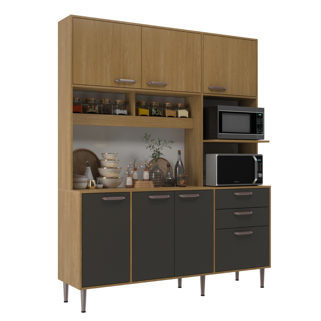 Posee 7 amplias puertas, 2 cajones una gran cubierta y el espacio perfecto para tu horno y microondas. En este kit podrás almacenar todo de manera ordenada, tal como lo deseas.