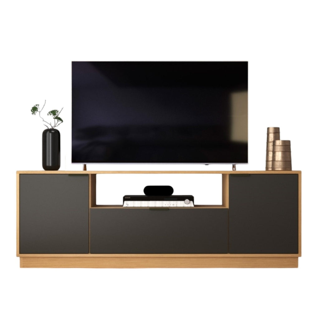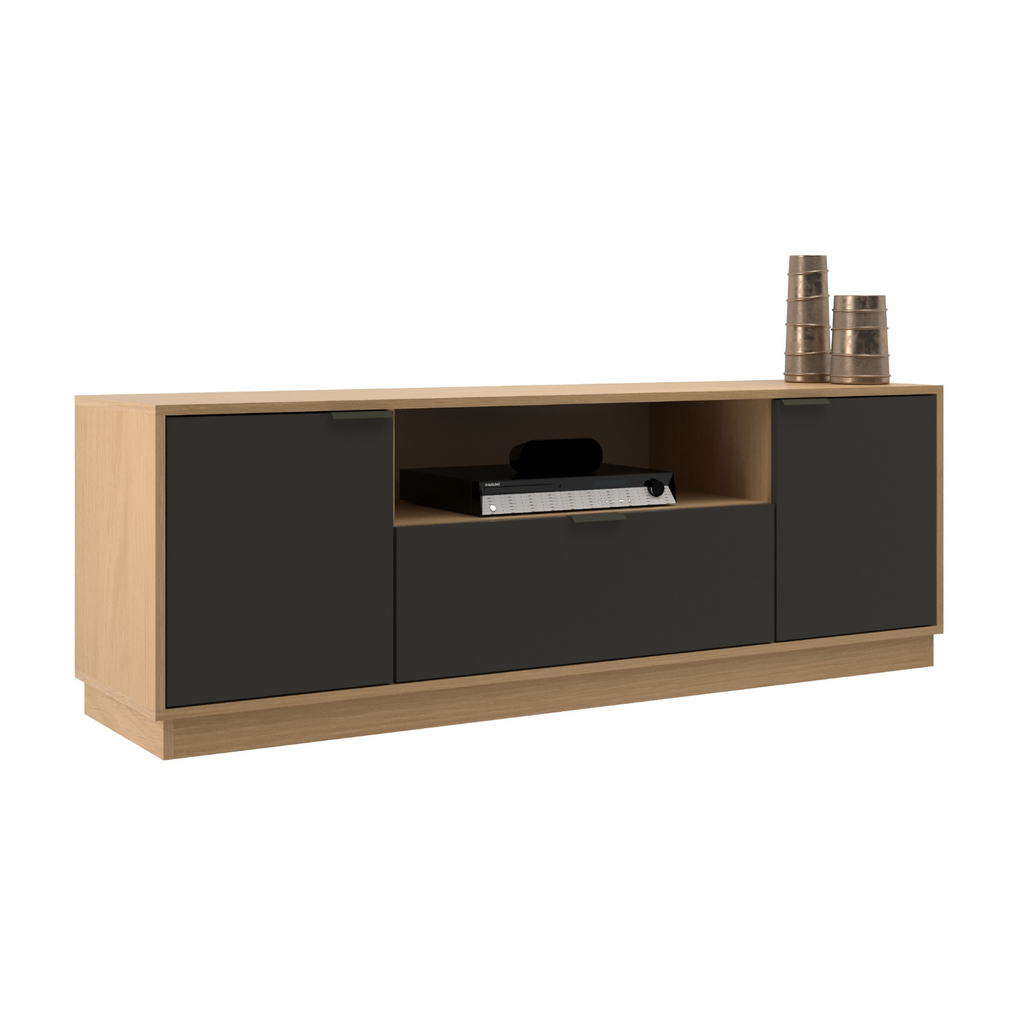 Posee 3 amplias puertas para almacenar lo que mas desees. En la parte central una repisa que te permitirá ubicar objetos de decoración y sobre ella una amplia cubierta donde podrás ubicar una TV de hasta 65"
